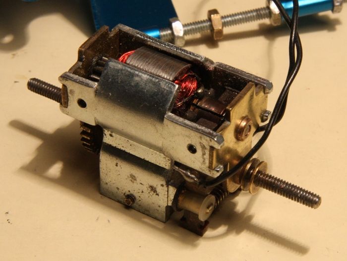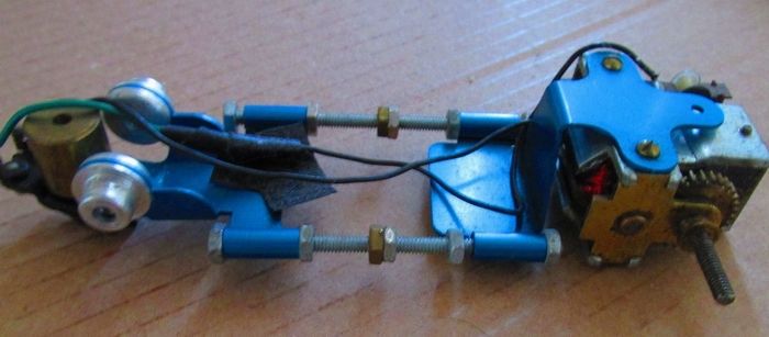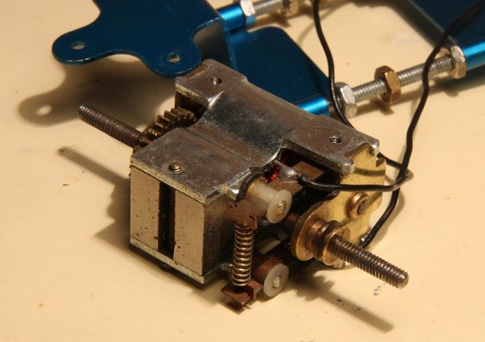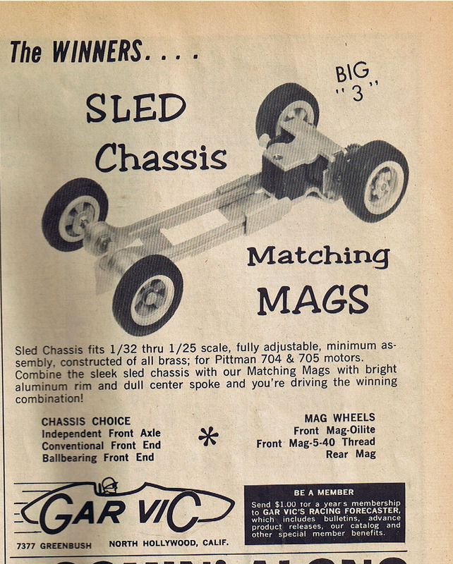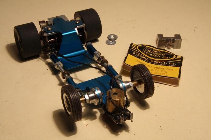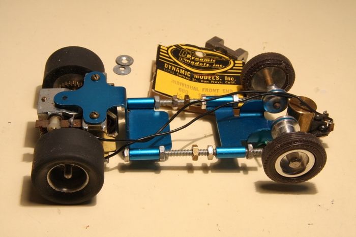 The aluminium pieces at the front are not oilites, but are 5-40 threaded. They seem to be original fitment. Does someone know if Garvic produced some kind of front axle (probably split) for this chassis, or may provide a copy of the original instruction sheet to see which was Garvic's recommendation about? There is a similar Garvic chassis for the Bonner motor that comes with ordinary oilites, but I can't imagine what was intended to be done with these threaded pieces. (Cutting an ordinary axle in two and installing free wheels retained by collars on the outside may be a solution, but it don't seems to me neat enough for being the factory recommendation)